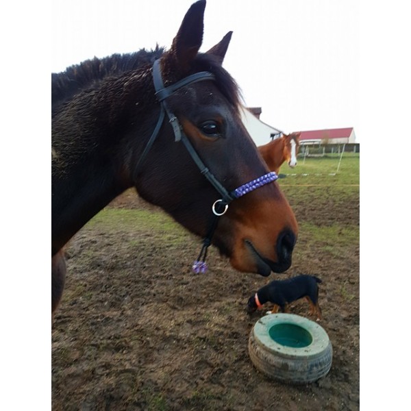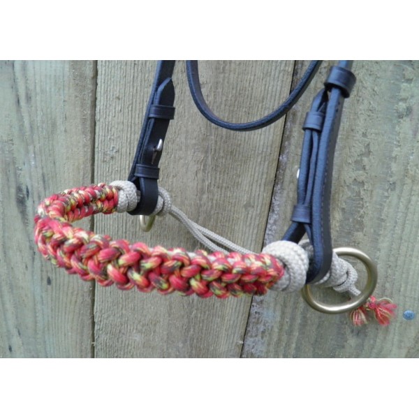 Side-Pull en corde. Deux anneaux en acier sont intégrés dans les noeuds. Tailles standardes et sur mesure. Muserolle tressée y compris - nombreuses options de couleur. Voir les plaquettes de couleurs en photos. Si vous ne voulez pas une muserolle tressée, veuillez entre "rien" dans la case ci-dessous.